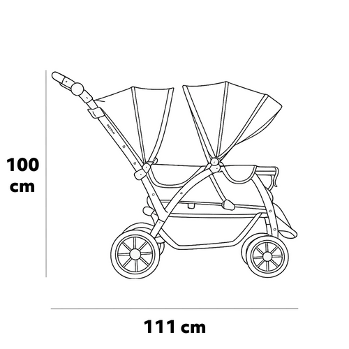 Con arnes de seguridad de 5 puntos, manillar ajustable, respaldo y reposapiés. Incluye sistema de frenado fácil de usar y protección UPF 50+ contra la lluvia y el sol.